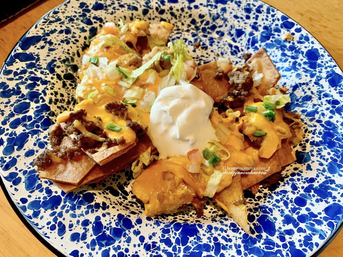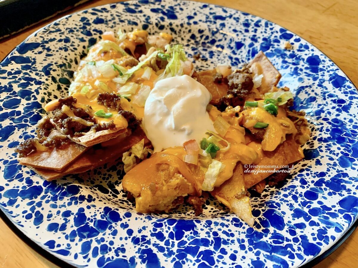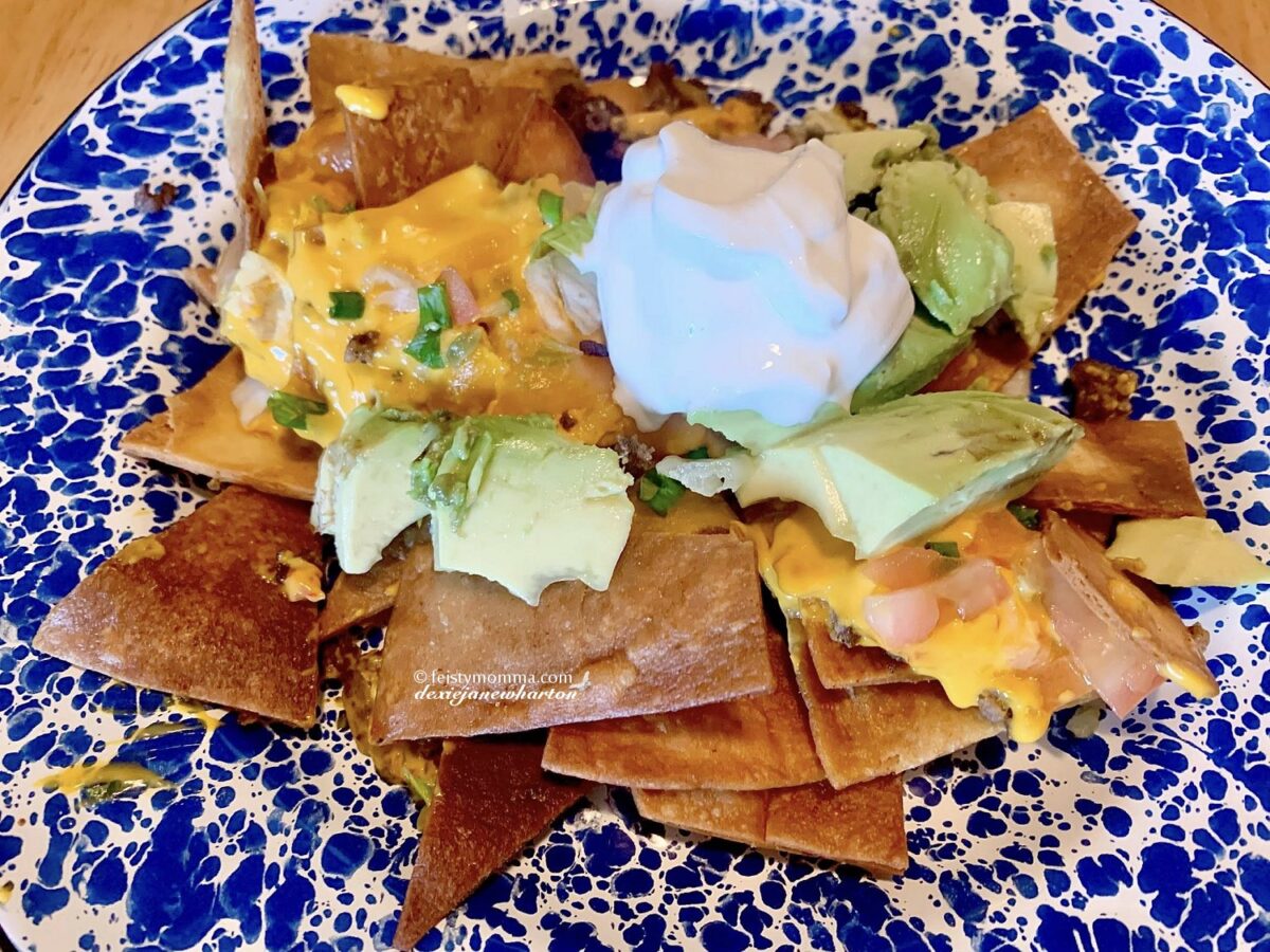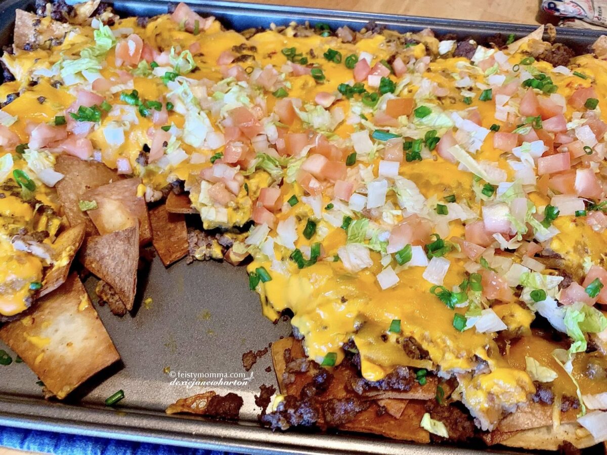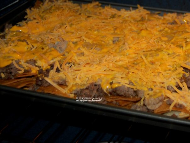 I mentioned flour tortillas. My daughter calls it homemade nachos which she loves. She loves Dorito’s Nachos for its cheesiness but one day I fried up flour tortillas and served them with con queso dip and the combo has turned into a favorite snack. I decided to take it up a notch and made Baked Nachos one day.