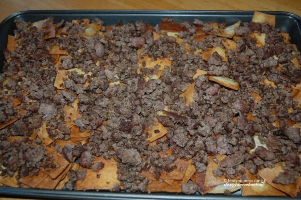 6. Spread the ground beef mixture on top.