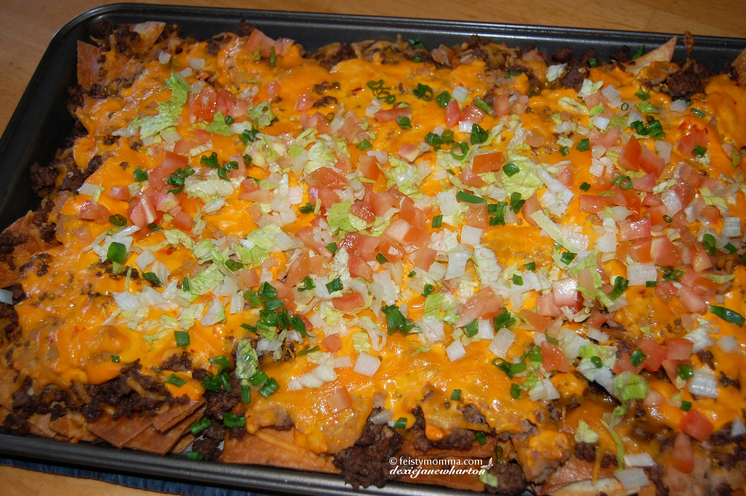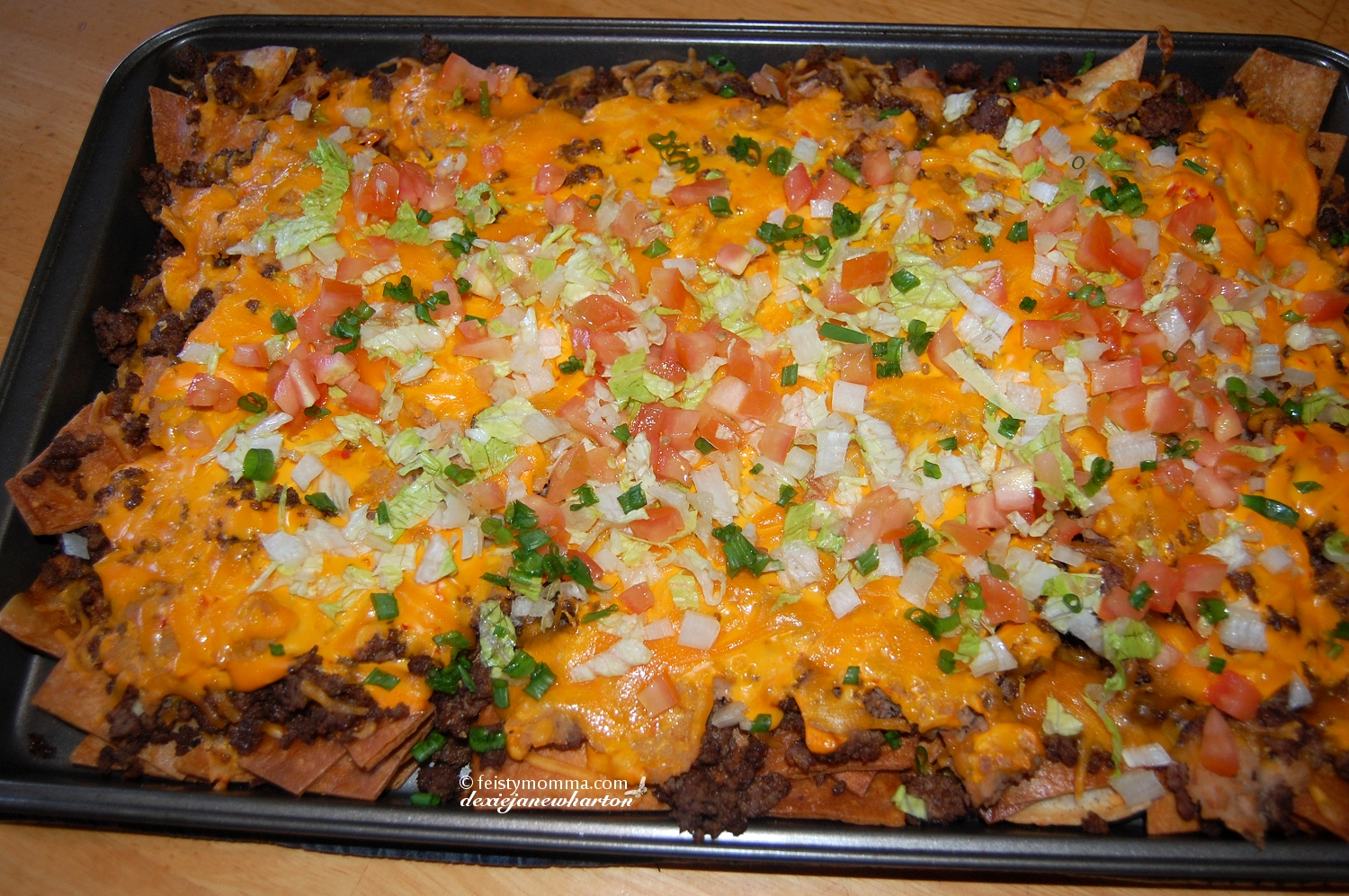 11. Top with chopped tomates. lettuce, and scallions (green onions). VOILA!